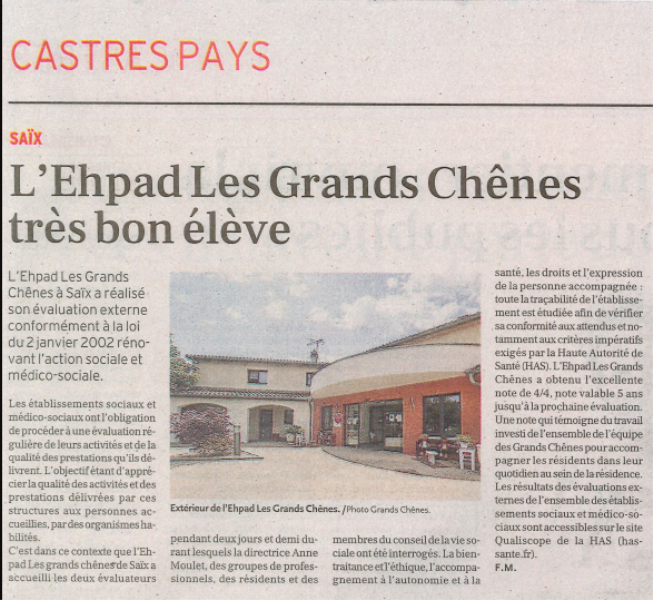 Dans la presse ce 22 janvier 2026... Les résultats de l'évaluation externe réalisée au sein de la Résidence au mois de décembre. Nous sommes fiers de la note obtenue et du travail de l'ensemble de l'équipe !
