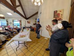 Ce jeudi 9 octobre, la Résidence Les Grands Chênes a mis à l’honneur son apprenti cuisinier, Mathéo Carrière, pour l’obtention de son diplôme CAP « Production et service en restauration » qu’il a réalisé au Centre de formation de la MFR-CFA de Peyregoux en apprentissage aux Grands Chênes. Mathéo Carrière est entré aux Grands Chênes par le biais d’un stage d’abord, avant d’entamer son parcours professionnel en cuisine, sous la supervision bienveillante et accompagnante de l’équipe de cuisine, notamment le Chef Olivier Escafre qui a pris le jeune sous son aile. Un accompagnement qui a porté ses fruits, car avec une mention à la clé, Mathéo Carrière persévère dans cette voie et complète ses connaissances et compétences avec un CAP Cuisinier qu’il vient de démarrer en apprentissage, toujours aux Grands Chênes. « Aux grands chênes on se sent bien, c’est comme une deuxième famille, j’ai eu la chance de faire mon apprentissage ici avec une équipe de cuisiniers au top, et un chef qui m’a beaucoup appris. Merci à eux, je suis prêt pour ce deuxième CAP ! », s’exprime le jeune homme.