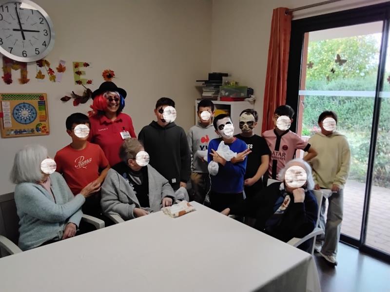 "Un bonbon ou un sort!" ... Mercredi 29 Octobre, les résidents des Grands Chênes ont reçu une drôle de visite... Parés de maquillages sombres et de déguisements, les jeunes du Centre de Loisirs du Dicosa sont venus récolter les bonbons d'Halloween auprès des résidents, qui ont pris plaisir à jouer le jeu de la tradition.